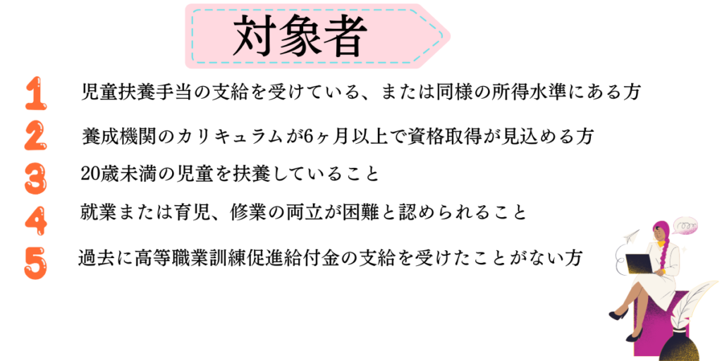 高等職業訓練促進給付金が対象になる要件と対象資格